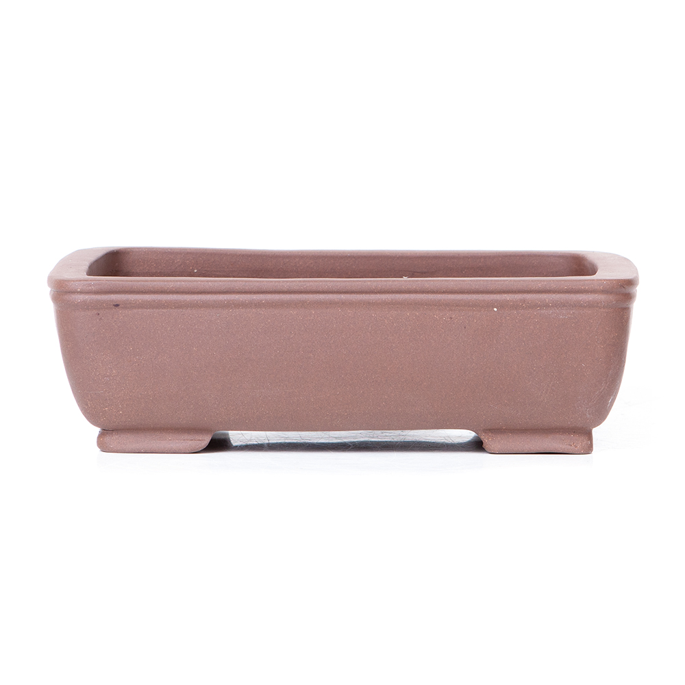 Unglasierte rechteckige handgefertigte Bonsaischale.