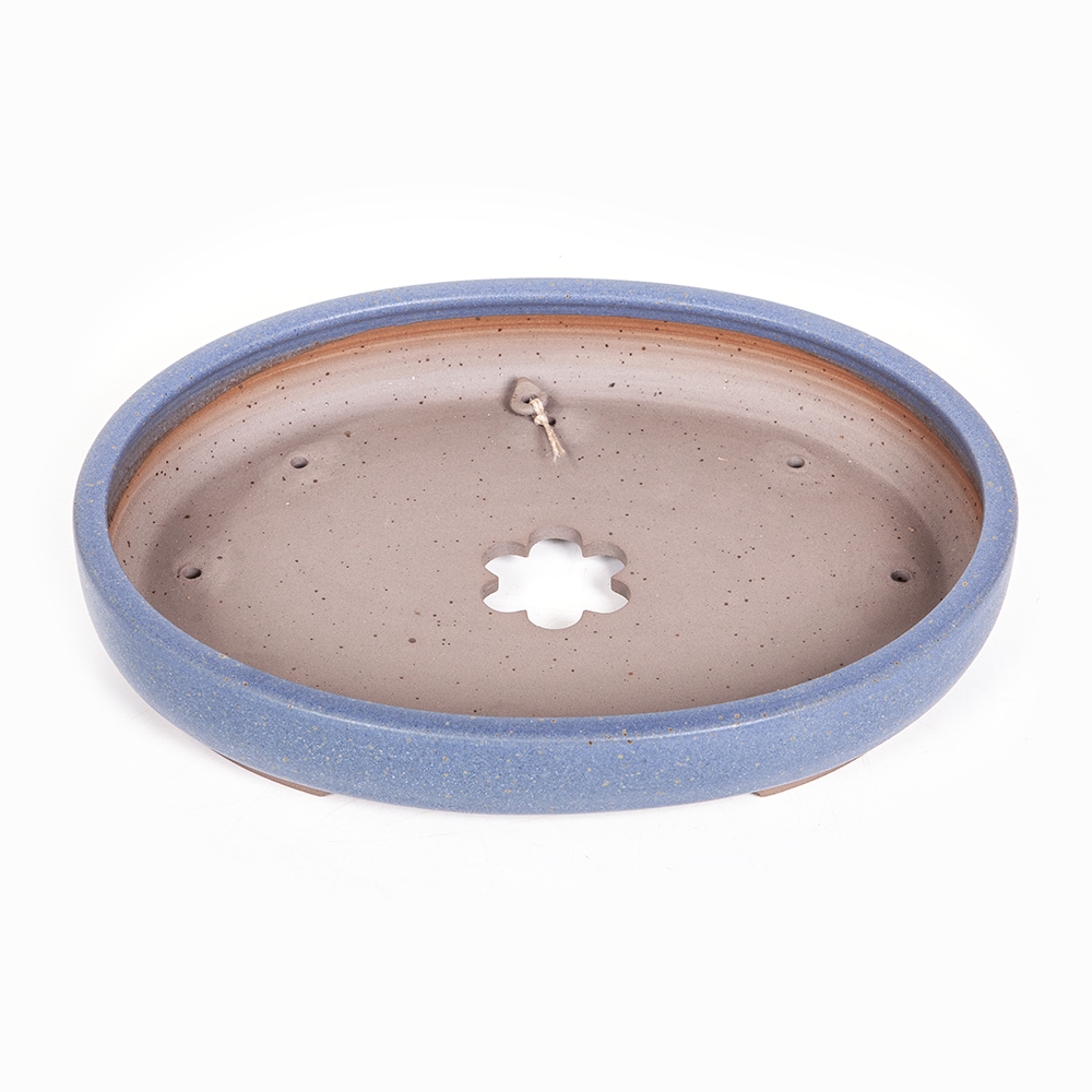Handgetöpferte ovale Bonsaischale von Roman Husmann. Besonders geeignet für einen Bonsai in frei oder streng aufrechter Form.